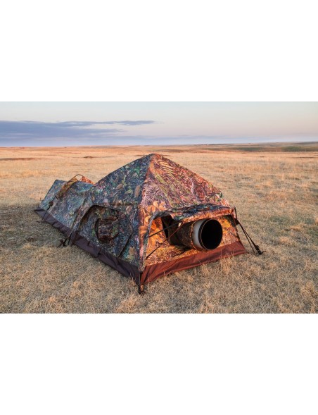 L’affût se déploie rapidement et utilise le même système de moyeux robuste que les modèles Tragopan V7 et Monal V3. Il est équipé d’une porte unique qui s’ouvre et se ferme de l’intérieur comme de l’extérieur grâce à des fermetures éclair silencieuses de haute qualité.