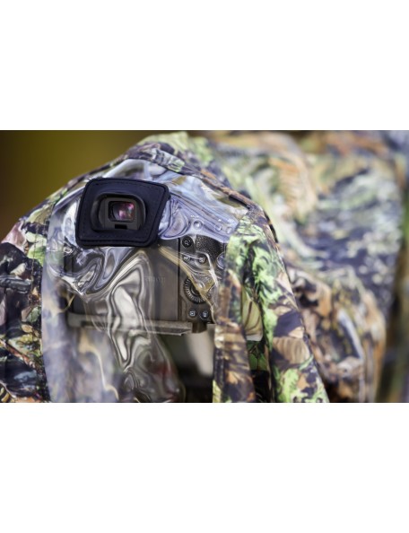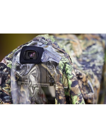 L’arrière de la housse dispose d’une grande fenêtre en plastique souple et transparent qui permet de visualiser l’écran arrière de votre boitier ainsi que les différentes commandes. Nos housses anti-pluie disposent dorénavant d’une casquette qui se fixe à l’avant du pare-soleil, elle évite ainsi que des gouttes d’eau viennent à l’intérieur du pare-soleil et éclaboussent la lentille frontale.