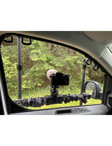 - Maximum Discretion: Remain invisible to wildlife. Using it from inside the vehicle allows for a more discreet and less intimidating approach to animals, increasing your chances of unique captures. Furthermore, the system is robust and secure enough to allow you to drive slowly with the camera in place, thus avoiding startling animals by the visible manipulation of your equipment.