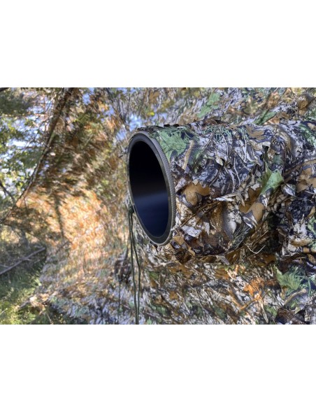 New Blanket is made of 3D fabric. Perfect to build a hide in understorey vegetation, or when lying on dead leaves. The blanket has a built-in sleeve at its mid-length and about 30 cm from the top edge, which allows a telephoto lens to be passed through. It also features an additional ground-level opening designed for low-angle shooting, providing greater flexibility when used in a lying position.